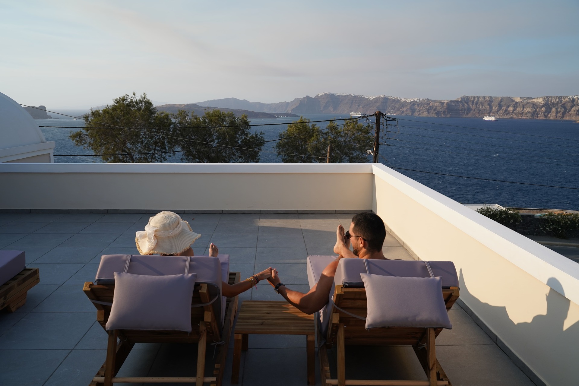 Outdoor peaks of The Noverian Bios, Caldera sunset suites: